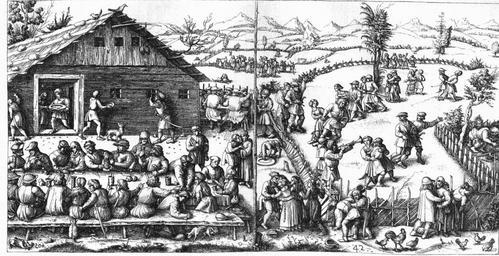 | Keywords: Kulturbilder 489.JPG Dörfliches Fest Links die Bauern an langer Tafel beim Festschmaus; rechts auf der Wiese Tanz zu dem ein paar auf einer Bank stehende Musikanten aufspielen Faksimile des Kupferstiches von Daniel Hopfer um 1500 ; eingescannt aus Henne am Rhyn Dr Otto Kulturgeschichte des deutschen Volkes Erster Band Berlin 1897 S 489 Creator Daniel Hopfer Late Middle Ages in Germany PD-old-100 Dancing peasants in art 16th-century dancers Peasants in the 16th century Leisure in the 16th century Daniel Hopfer Peasants in the 15th century Artworks missing infobox template |