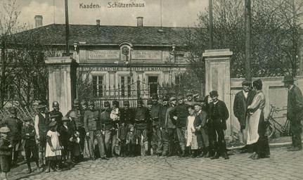 Keywords: Kulturní zařízení Střelnice - Kadaň 02.jpg cs Restaurant Střelnice s kadaňskou vojenskou posádkou v popředí 2016-09-30 soukromá sbírka Anonymous other versions Custom license marker 2016 09 30 Anonymous-EU Kadaň