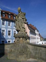 Keywords: kunigunde empress crown golden holy statue still image fig stone base lower bridge housewife bowever bamberg sky blue art sky blue sculpture