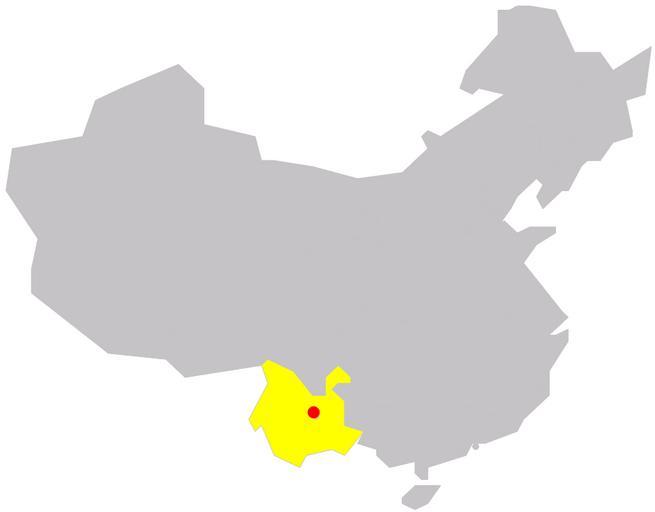 Keywords: Kunming in China.png position of Kunming in China<br> Source own work<br> Date December 2005 <br> Author --Immanuel Giel 13 32 16 December 2005 UTC <br> Other versions none<br> 2005-12-16 own assumed Immanuel Giel Locator maps of cities in China |
