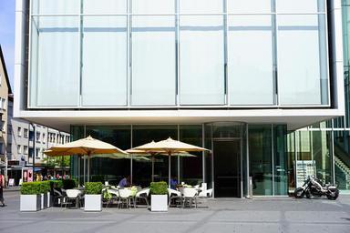 | Keywords: kunsthalle weishaupt ulm kusthalle building architecture glass glass facade window modern art weishaupt exhibition building cube frontal front view downtown ulm city centre town center pedestrian zone places of interest exhibitions tourism cafe gastronomy out street cafe outside catering sit restaurant road eat new center |
