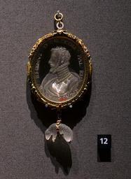 | Keywords: Kunsthistorisches Museum 09 04 2013 Medallion William V of Bavaria.jpg en Pendant medallion with a portrait of William V Duke of Bavaria Rock crystal intaglio seen from the back rubies gold enamel Last quarter of the 16th century Now in the Kunsthistorisches Museum in Vienna 2013-04-18 19 30 13 own Vassil cc-zero Collection of Sculpture and Decorative Arts Kunsthistorisches Museum Renaissance jewellery Uploaded with UploadWizard Rock crystal objects Renaissance glyptics Intaglios William V Duke of Bavaria Order of the Golden Fleece Quality images of the Kunsthistorisches Museum Wien QualityImage |