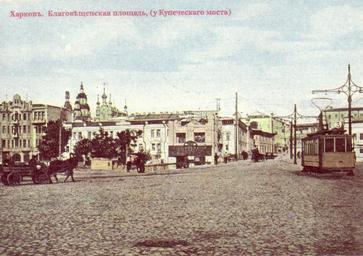 | Keywords: Kupechesky most.jpg Universal Postal Union A postcard Kharkov View from Blagoveshchenskaya Square now Karl Marx Square across the Lopan River facing University Hill to Kupechesky Bridge and Kupechesky Spusk Pokrovsky monastery is to the left ru Всеми ный почтовый союз Отк ытое письмо Ха ьков Вид с Благовещенской площади ныне пл Ка ла а кса че ез еку Лопань в сто ону Униве ситетской го ки на Купеческий мост и Купеческий спуск Слева виден Пок овский монасты ь A reproduction of post cards dated early 20th century own scan for original paper postcard // еп одукция почтовой ка точки начала XX века свой скан бумажной отк ытки 1909 \ early 20th century Unknown; на отк ытке не указан PD-old PD-RusEmpire Postcards of Kharkiv Pokrovsky Cathedral in Kharkiv Trams in Kharkiv Sobornyi Descent Kupechesky Bridge 1909 in Kharkiv |
