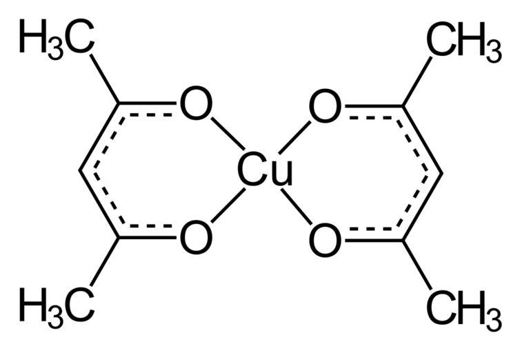 Keywords: Kupfer(II)-acetylacetonat.svg de Kupfer II -acetylacetonat own Roland chem 2014-11-02 Acetylacetonato complexes Copper complexes Cc-zero