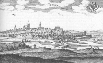| Keywords: Kupferstich treysa.jpg Ansicht der Stadt von Norden im Jahr 1655 Im Bildvordergrund ist der Fluss Schwalm mit der alten Steinbogenbrücke zu sehen die erst in den 1960er Jahren abgerissen wurde Die Verlängerung durch das Stadttor in die Stadt hinein ist die Steingasse Links auf dem Bergrücken ist die Totenkirche zu sehen und rechts das Dominikanerkloster die Klosterkirche ist heute die Stadtkirche Dazwischen befindet sich das Rathaus mit einem Turm arranged by 2micha 1655 creator Matthäus Merian Out of copyright as author died more than 70 years ago picture is part of Image De Merian Hassiae 196 jpg PD-old-100 Schwalmstadt in art Engravings of towns in Germany 1655 Stone arch road bridges in Hesse |