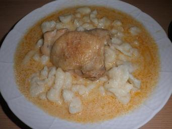 Keywords: Kura na smotane.JPG en chicken dish with dumplings and cream sauce sk Kura na smotane s haluškami own Foxburg 2009-08-11 Chicken dishes of Slovakia Cream sauces