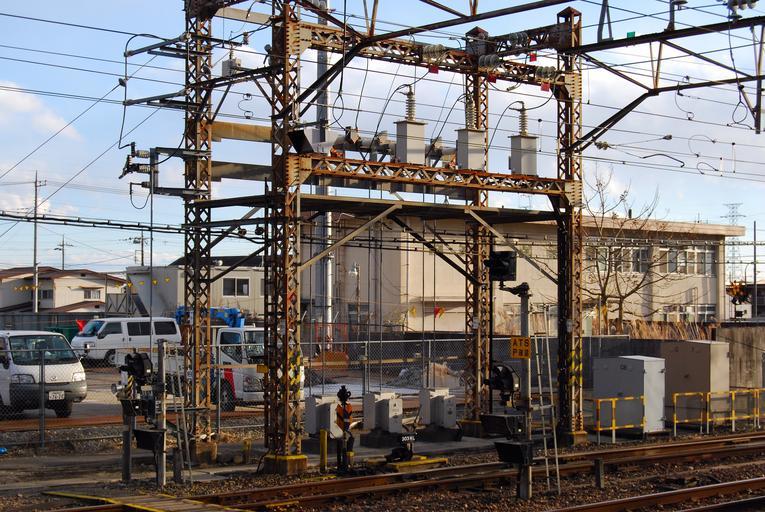 | Keywords: Kuroiso station kirikaekiki no1.JPG ja 黒磯駅構内 京方 に設置されている交直切換断路器 上からの指令により黒磯変電 からの直流1500Vと交流20kV50Hzの電源を断路器により切替ることにより 黒磯駅構内の区分された架線(セクション)に切替えた電源を給電する設備 上にある切替用の駆動装置と棒で接続されている (ホームから撮影) 投稿 が撮影 toshinori baba 2011-01-06 Cc-zero Kuroiso Station |