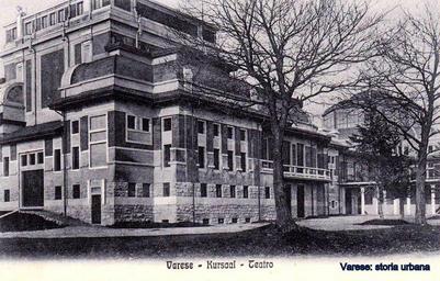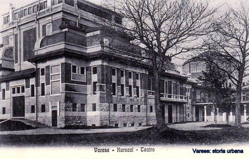 Keywords: Vista del Kursaal (arch. Gaetano Moretti, 1905) con in primo piano l'edificio del teatro (arch. Giuseppe Sommaruga e ing. Giulio Macchi, 1911). varese kursaal