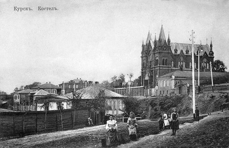 | Keywords: Kursk Catholic Church in the beginning of the XX century (view from Nizhnyaya Gostinnaya street).jpg en Roman Catholic church of the Assumption of the Virgin Mary in Kursk Russia View from Nizhnyaya Gostinnaya street Postcard made at the begining of the XX century ru Католический х ам Успения П есвятой Бого одицы в Ку ске Вид со сто оны ижней Гостинной улицы Сп ава от х ама дом ксендза В цент е дом мещанки В И К аснощековой Почтовая ка точка начала XX века До еволюционная отк ытка old postcard digital copy downloaded from book циф овая копия заг ужена из книги «В И Скля ук Ф Логачев Ю В Озе ов Ста ые Ку ские Отк ытки Каталог иллюст и ованных почтовых ка точек 1899 1930 годов с объяснением видов го ода Ку ск 2005 г ISBN 5-86354-106-7» http //old kurskcity ru/book/post-cart/page165 html Page ст аница 165 Publisher издатель агазин Пе еплетенко Ку ск 1910 PD-Art Catholic church of the Assumption of the Virgin Mary Kursk Kursk on postcards of the Russian Empire |