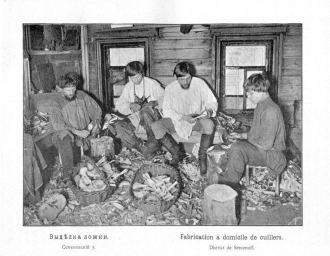 | Keywords: Kustari 010 Videlka lozhki.jpg en Handicraft Industry and Trades of Nizhegorodskaja gubernija Semenov XIX c ru Куста ные п омыслы и емёсла ижего одской губе нии Выделка ложки Семёновский уезд 1896 год Скани ован из книги ижего одская губе ния по исследованиям губе нского земства Выпуск II Куста ные п омыслы ижего одской губе нии / сост А Плотников СПб 1896 еизвестный фотог аф конца XIX века 1896 PD-old Handicraft Industry of Nizhny Novgorod province | ||||