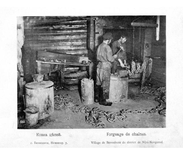 | Keywords: Kustari 054 kovka zepej.jpg en Handicraft Industry and Trades of Nizhegorodskaja gubernija Bezsvodnoe XIX c ru Куста ные п омыслы и емёсла ижего одской губе нии Ковка цепей Село Безводное ижего одского уезда 1896 год Скани ован из книги ижего одская губе ния по исследованиям губе нского земства Выпуск II Куста ные п омыслы ижего одской губе нии / сост А Плотников СПб 1896 еизвестный фотог аф конца XIX века 1896 PD-old Handicraft Industry of Nizhny Novgorod province | ||||