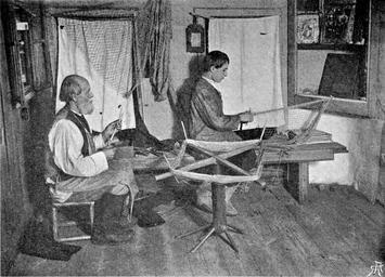 | Keywords: Kustari 094 Pletenie setej.jpg en Handicraft Industry and Trades of Nizhegorodskaja gubernija Reshetiha XIX c ru Куста ные п омыслы и емёсла ижего одской губе нии Плетение ыболовных сетей Де евня Решетиха Балахнинского уезда 1896 год Tressagre de filets de pêche Vilage de Récheticha du district du Balachna Скани ован из книги ижего одская губе ния по исследованиям губе нского земства Выпуск II Куста ные п омыслы ижего одской губе нии / сост А Плотников СПб 1896 еизвестный фотог аф конца XIX века 1896 PD-old Netting needles Handicraft Industry of Nizhny Novgorod province Black and white photographs of people at work |
