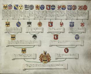 | Keywords: Kwartierstaat met de wapens van de zestien kwartieren van Jan van de Poll Rijksmuseum SK-A-1277.jpeg accession number SK-A-1277 Anonymous credit line nl Kwartierstaat met de wapens van de zestien kwartieren van Jan van de Poll 1668-1745 van de Poll de Vroede Duivel Dommer van Gerwen van Maren van Warmond Brouwer Hooft Haak Houtlook Boswinkel Hasselaar Persijn van Schoterbosch en Kies Onderdeel van een groep van drie wapens behorend bij de schenking J S R van de Poll Arnhem 1885 SK-A-1276/1278 Onderdeel van de collectie heraldische objecten drager Height cm 57 drager Width cm 70 exhibition history Institution Rijksmuseum parchment ; ink ; watercolor object history Acquisition 1885-11-01 object type heraldisch object PD-US PD-old Data and photography rights All data and all images made available through the API are either in the public domain or are subject to a CC0 license https //www rijksmuseum nl/en/api/terms-and-conditions-of-use cc-zero place of creation Noordelijke Nederlanden http //www rijksmuseum nl/collectie/SK-A-1277 Kwartierstaat met de wapens van de zestien kwartieren van Jan van de Poll Q17323947 Uploaded with GWToolset Kwartierstaat met de wapens van de zestien kwartieren van Jan van de Poll Rijksmuseum SK-A-1277 http //www rijksmuseum nl/media/assets/SK-A-1277 Images uploaded by Fæ Images from the Rijksmuseum Paintings in the Rijksmuseum Amsterdam |