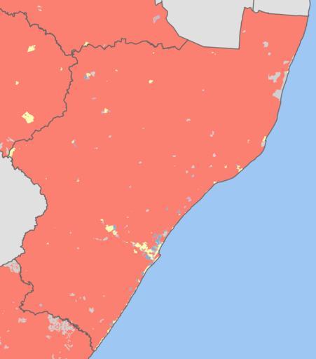 | Keywords: KwaZulu-Natal 2001 dominant population group map.svg fb8072 Black African 8dd3c7 Coloured 80b1d3 Indian or Asian ffffb3 White bebada No group dominant d0d0d0 No population Projection is Albers Equal-Area Conic with standard parallels at 25 5° S and 31 5° S and origin at 28 5° S 25 5° E Statistics South Africa's Census 2001 is the source of the basic population data The map results from my own processing of the data Htonl 2010-02-15 Htonl The following license applies to the population data on which the map is based http //www statssa gov za/copyrightdisclaimer asp the user acknowledges Stats SA as the source of the basic data wherever they process apply utilise publish or distribute the data and also that they specify that the relevant application and analysis where applicable result from their own processing of the data The following tag applies to the map itself Demographic maps of South Africa Maps of KwaZulu-Natal Maps with Albers projection |