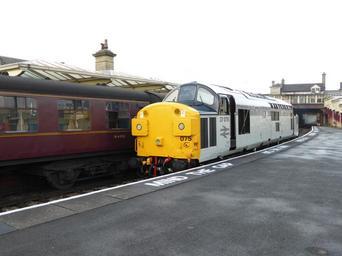 Keywords: kwvr diesel keighleyworthvalleyrailway railway worthvalley train outdoor vehicle locomotive railroad 37075 at Keighley. 37075 at Keighley.