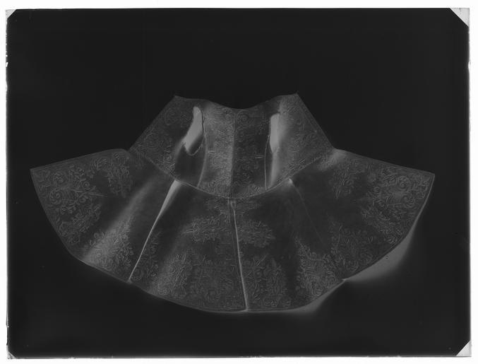 | Keywords: Kyller - Livrustkammaren - 17140-negative.tif LSH artwork sv Kyller av älghud tillskuret med livsöm och utan ärmar Mitt bak och i sidorna ett snedskuret sprund från livsömmen Broderier med guld- och silvertråd samt paljetter i form av rank- och blomornament Broderierna koncentrerade till kanter och hörn <br/><br/>Foder av ljusblått linne Baksidan av broderiet med gult och vitt lingarn <br/><br/>I livets framkant nitton små hål på vardera sidan för snörning original caption kyller LRK 11568 ca 1630 gold thread d4 - dräkt - passpoaler band kantning uppslag material guldtråd - silver thread d4 - dräkt - passpoaler band kantning uppslag material silvertråd - linen Färg ljusblå d2 - dräkt - foder material linne size mm 720 size mm 290 liv size mm 430 skört kg 3 5 LRK Erik Hansson Soop överste Jakt 1973 Läckö slott Modelejon 2002 place of origin original filename LN_A00192_000192 48172 inventory number LRK 11568 17140 CC0 Kyller - Livrustkammaren - 17140 tif <gallery caption Different images of same object > File Kyller ca 1630 - Livrustkammaren - 26564 tif </gallery> |