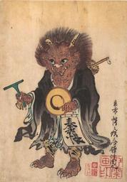 | Keywords: Kyosai Oni in priest's robes.jpg Kyosai Kawanabe 1864 depiction of an oni chanting a Buddhist prayer The oni ogre or demon is dressed in the robes of a wandering Buddhist priest He carries a gong a striker and a hogacho Buddhist subscription list From http //www visasia com au/programmes/arts_of_asia/arts_of_japan_2003 here PD-Art Kawanabe Kyosai Paintings of the Edo period Oni Artworks missing infobox template | ||||