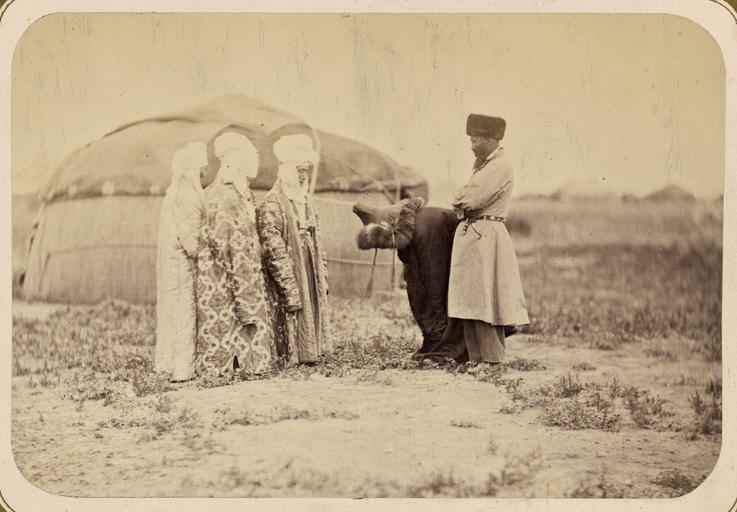 | Keywords: Kyrgyz Wedding Rites. Inspection by the Groom WDL10893.png Artwork ru Кун Александ Людвигович 1840 1888 гг fr Kun Aleksandr L 1840-1888 en Kun Aleksandr L 1840-1888 zh 亚历山大·L· ,1840-1888 年 pt Kun Aleksandr L 1840-1888 ar كُن، ألكسندر ل ، 1840-1888 es Kun Aleksandr L 1840-1888 ru Свадебные об яды ки гизов Смот жениха fr Rites de mariage kirghizes Examen par le marié en Kyrgyz Wedding Rites Inspection by the Groom zh 吉尔吉斯的婚礼习俗:新郎的端详 pt Ritos de casamentos no Quirguistão Inspeção pelo noivo ar طقوس الزفاف القرغيزية تفحُّص بواسطة العريس ru Эта фотог афия входит в этног афическую часть <em> Ту кестанского альбома </em><em></em> всесто оннего исследования Цент альной Азии п едп инятого после того как в 1860-х годах в егионе установилось господство Российской импе ии Альбом созданный по аспо яжению гене ала Константина Пет овича фон Кауфмана 1818 1882 годы пе вого гене ал-губе нато а оссийского Ту кестана состоит из четы ех частей в шести томах «Часть а хеологическая» два тома «Часть этног афическая» два тома «Часть п омысловая» один том и «Часть исто ическая» один том Основным составителем альбома был оссийский востоковед Александ Людвигович Кун аботавший совместно с иколаем Венедиктовичем Богаевским В альбоме п едставлено около 1200 фотог афий а также а хитекту ные планы аква ельные исунки и ка ты «Часть этног афическая» включает в себя 491отдельную фотог афию на 163 листах а фотог афиях изоб ажены п едставители азличных на одов егиона листы 1 33 повседневная жизнь и итуалы листы 34 91 а также виды де евень и го одов уличные то говцы и комме ческая деятельность листы 92 163 <br> евесты; Этног афические фотог афии; Женихи свадьбы ; Ки гизский; Фотог афические исследования; Об яды и це емонии; Свадьбы fr Cette photographie est extraite de la partie ethnographique de l'<em>Album du Turkestan</em> étude visuelle complète de l'Asie centrale entreprise après que l'Empire russe prit le contrôle de la région dans les années 1860 Commandé par le général Konstantin Petrovich von Kaufman 1818 1882 premier gouverneur général du Turkestan russe l'album est composé de six volumes en quatre parties la partie archéologique deux volumes la partie ethnologique deux volumes la partie sur les métiers un volume et la partie historique un volume L'album fut essentiellement compilé par l'orientaliste russe Aleksandr L Kun assisté de Nikolai V Bogaevskii Il comporte près de 1200 photographies et inclut également des plans architecturaux des dessins à l'aquarelle et des cartes La partie ethnographique compte 491 photographies sur 163 planches montrant des individus des différentes peuplades de la région planches 1 à 33 des scènes de la vie quotidienne et des rites planches 34 à 91 ainsi que des vues de villages et de villes de vendeurs ambulants et d'activités commerciales planches 92 à 163 <br>Mariées; Photographies ethnographiques; Jeunes mariés mariages ; Kirghizie; Inventaires photographiques; Rites et cérémonies; Noces en This photograph is from the ethnographical part of <em>Turkestan Album</em><em> </em>a comprehensive visual survey of Central Asia undertaken after imperial Russia assumed control of the region in the 1860s Commissioned by General Konstantin Petrovich von Kaufman 1818 82 the first governor-general of Russian Turkestan the album is in four parts spanning six volumes Archaeological Part two volumes ; Ethnographic Part two volumes ; Trades Part one volume ; and Historical Part one volume The principal compiler was Russian Orientalist Aleksandr L Kun who was assisted by Nikolai V Bogaevskii The album contains some 1 200 photographs along with architectural plans watercolor drawings and maps The Ethnographic Part includes 491 individual photographs on 163 plates The photographs show individuals representing the different peoples of the region Plates 1 33 ; daily life and rituals Plates 34 91 ; and views of villages and cities street vendors and commercial activities Plates 92 163 <br>Brides; Ethnographic photographs; Grooms Weddings ; Kyrgyz; Photographic surveys; Rites and ceremonies; Weddings zh 这张照片出自<em> 其斯 相册 </em><em> </em>的民族部分,该相册是俄罗斯 国 19 世纪 60 年代取得中亚控制 后, 手制 的 部针对该 区的综合 图像调查记录 相册由俄罗斯驻 其斯 (俄罗斯 国中亚属 的名称)首任 康斯 丁·彼得罗维奇·凡· 夫曼(Konstantin Petrovich von Kaufman,1818 82 年)将军赞助完成,共分六卷,四个部分: 古部分 (两卷); 民族部分 (两卷); 贸易部分 ( 卷)和 历史部分 ( 卷) 相册的主要编纂人是俄罗斯 方学 亚历山大·L· Aleksandr L Kun 亚历山大是 尼可莱·V·柏盖维斯基 Nikolai V Bogaevskii 的协助下完成相册的编纂 相册共含 1200 张照片,另 建筑平 图 水彩画和 图 民族部分 包括 491 张个人照,占 163 页 照片展现了该 区各个民族的人物形象(1-