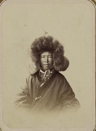 | Keywords: Kyrgyz Wedding Rites. Kyrgyz Groom (groom (Turkish)), Ruzi bai. WDL2472.png Artwork ru Ки гизские свадебные об яды Ки гизский жених жених ту ок Рузи бай fr Rites matrimoniaux en Kirghizie Jeune marié en Kirghizie marié turc Ruzi bai en Kyrgyz Wedding Rites Kyrgyz Groom groom Turkish Ruzi bai zh 吉尔吉斯婚礼仪式 吉尔吉斯新郎(新郎 其),如 柏 pt Ritos Matrimoniais Quirguizes Noivo Quirguiz noivo turco Ruzi bai ar طقوس الزفاف القيرغيزية عريس قيرغيزي عريس تركي ، روزي باي ru Этот по т ет ки гизского жениха Рузи-бая включен в <em> Ту кестанский альбом </em> один из самых богатых источников наглядной инфо мации о культу ных памятниках С едней Азии в том виде как они существовали в XIX веке Этот многотомный т уд был выпущен в 1871-1872 годах под пат онажем Константина П фон Кауфмана гене ала усской а мии ставшим пе вым гене ал-губе нато ом Ту кестана в составе Российской импе ии Кауфман оставался гене ал-губе нато ом с 1867 по 1886 год и сыг ал значительную оль в деле ук епления домини ующей позиции России в Цент альной Азии Вслед за военными в ст ану п ибыли чиновники и п едп иниматели а также ученые заинте есованные в сбо е документальных свидетельств богатейшего культу ного наследия егиона Фотомате иалы для <em> Ту кестанского альбома </em> были соб аны главным об азом Александ ом Л Куном 1840-1888 гг ученым-востоковедом в составе усской а мии и иколаем В Богаевским 1843-1912 гг военным инжене ом Ки гизы относятся к тю кской этнической г уппе; они населяли обши ные те ито ии на востоке Ту кестана Их об ащение в суннитский ислам объясняют влиянием а абских купцов кото ые в VIII веке путешествовали по Великому шелковому пути Фотог афия жениха <em>кииау</em> входит в се ию фотог афий посвященных к игизским свадебным об ядам П очная одежда п остого пок оя и ог омная меховая шапка свидетельствуют о су овом климате восточного Ту кестана <br>Женихи свадьбы ; По т етные фотог афии fr Ce portrait de Ruzi bai jeune marié kirghiz provient de l'Album de Turkestan l'une des plus importantes sources de documentation visuelle sur les cultures et monuments d'Asie centrale au 19e siècle Cet ouvrage en plusieurs volumes a été élaboré en 1871-72 sous la direction de Konstantin P von Kaufman général de l'armée russe et premier Gouverneur général du Turkestan nom donné aux territoires russes de l'Asie centrale En poste de 1867 à 1886 Kaufman a joué un rôle majeur dans le renforcement des positions russes en Asie centrale Les forces de conquête ont en effet été suivies par des administrateurs et des entrepreneurs aussi bien que par des chercheurs intéressés par le patrimoine culturel de la région Les premiers à avoir travaillé sur l'Album du Turkestan ont été Aleksandr L Kun 1840-1888 orientaliste rattaché à l'armée et Nikolai V Bogaevskii 1843-1912 ingénieur militaire Les Kirghiz sont une groupe ethnique d'origine turque largement répandus à travers le Turkestan oriental Leur conversion à l'Islam sunnite serait due aux marchands arabes qui parcouraient la Route de la soie au cours du 8e siècle Le jeune marié kiiau photographié ici fait partie d'une série consacrée aux rites matrimoniaux kirghiz Les vêtements simples et durables et en particulier l'énorme chapeau de fourrure reflètent la rudesse du climat du Turkestan oriental <br>Jeunes mariés mariages ; Portraits photographiques en This portrait of a Kyrgyz bridegroom Ruzi-bai is from <em>Turkestan Album</em> one of the richest sources of visual information on the cultural monuments of Central Asia as they appeared in the 19th century This multi-volume work was produced in 1871-72 under the patronage of Konstantin P Von Kaufman a Russian army general and the first Governor-General of Turkestan as the Russian Empire's Central Asian holdings were called Kaufman held that position from 1867 to 1886 during which time he played a major role in establishing Russia's dominant position in Central Asia The forces of conquest were followed by administrators and entrepreneurs as well as scholars interested in documenting the region's cultural heritage The primary photographic compilers for the <em>Turkestan Album</em> were Aleksandr L Kun 1840-88 an orientalist attached to the army and Nikolai V Bogaevskii 1843-1912 a military engineer The Kyrgyz are a Turkic ethnic group widely spread over the area of eastern Turkestan Their conversion to Sunni Islam is attributed to Arab merchants traveling the Silk Road in the eighth century The bridegroom <em>kiiau</em> pictured here is part of a series devoted to Kyrgyz wedding rites The simple durable clothes including the enormous fur hat reflect the harsh climate of eastern Turkestan <br>Grooms Weddings ; Portrait photographs zh 这幅吉尔吉斯新郎 Ruzi-bai 的肖像画出自<em> 