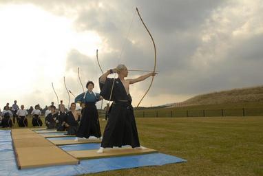 | Keywords: Kyudo or the way of archery.jpg Personality rights Members of the Gotemba Kyudo Association demonstrate Kyudo or the way of archery The Combined Arms Training Center Camp Fuji hosted Nov 5 the 2006 Camp Fuji Martial Arts Expo a gathering of Japanese cultural attractions with an emphasis on the martial arts including demonstrations from 238 performers with 16 different groups and several static displays The Shizoka Sports Association estimated the expo featured the widest variety of martial arts groups at a single event according to expo organizers http //www usmc mil/marinelink/image1 nsf/Lookup/2006111752721 05/11/2006 Sgt Ethan E Rocke Photo ID 2006111752721 Submitting Unit MCB Camp Butler PD-USGov Modern depictions of yumi Camp Fuji Modern depictions of kyudo |