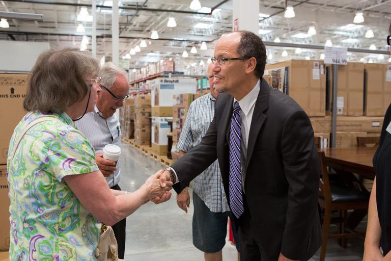 | Keywords: L-13-08-08-A.230 (9464456811).jpg 08 August 2013 - Washington DC - Secretary of Labor Thomas Perez dropped by the grand opening of the new Costco store in Alexandria Va Secretary Perez toured the new store with Costco CEO Craig Jelinek and Costco founder and former CEO Jim Sinegal He also chatted with employees and customers Official Department of Labor Photograph This official Department of Labor photograph is being made available only for publication by news organizations and/or for personal use printing by the subject s of the photograph The photograph may not be manipulated in any way and may not be used in commercial or political materials advertisements emails products and/or promotions that in any way suggest approval or endorsement of the Secretary or the Department of Labor Photo Credit Department of Labor https //www flickr com/photos/usdol/9464456811/ L-13-08-08-A 230 2013-08-08 09 10 https //www flickr com/people/52862363 N07 US Department of Labor PD-USGov US Department of Labor https //flickr com/photos/52862363 N07/9464456811 2016-09-06 08 14 03 United States Government Work Uncategorized 2016 December 21 |