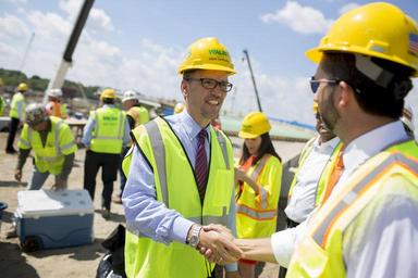 | Keywords: L-14-09-03-A-0759 (14953530007).jpg U S Secretary of Labor Thomas E Perez shakes hands with a worker at an active Walsh Construction Company infrastructure project site in Indianapolis on Wednesday Sept 3 2014 The company is building a new bridge for an exit from the northbound lanes of Interstate 65 to the westbound lanes of Interstate 465 on Indianapolis' southeast side Official Department of Labor Photograph This official Department of Labor photograph is being made available only for publication by news organizations and/or for personal use printing by the subject s of the photograph The photograph may not be manipulated in any way and may not be used in commercial or political materials advertisements emails products and/or promotions that in any way suggest approval or endorsement of the Secretary or the Department of Labor Photo Credit Department of Labor https //www flickr com/photos/usdol/14953530007/ L-14-09-03-A-0759 2014-09-03 13 23 https //www flickr com/people/52862363 N07 US Department of Labor PD-USGov US Department of Labor https //flickr com/photos/52862363 N07/14953530007 2016-09-06 06 16 06 United States Government Work Uncategorized 2016 December 21 |