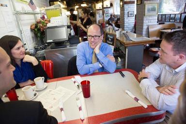 | Keywords: L-14-10-22-B.114 (14981944444).jpg 22 October 2014 - Secretary of Labor Thomas Perez meets and has lunch with Paid Leave letter writers Daniel McCleese Prince William County Firefighter and Kate Davenport; a social worker in Maryland Dan's wife Laura McCleese and Kate's husband Chris Davenport also joined them for the lunch at the Florida Ave Grill Official Department of Labor Photograph This official Department of Labor photograph is being made available only for publication by news organizations and/or for personal use printing by the subject s of the photograph The photograph may not be manipulated in any way and may not be used in commercial or political materials advertisements emails products and/or promotions that in any way suggest approval or endorsement of the Secretary or the Department of Labor Photo Credit Department of Labor https //www flickr com/photos/usdol/14981944444/ L-14-10-22-B 114 2014-10-22 11 42 https //www flickr com/people/52862363 N07 US Department of Labor PD-USGov US Department of Labor https //flickr com/photos/52862363 N07/14981944444 2016-09-06 05 54 20 United States Government Work Uncategorized 2016 December 21 |