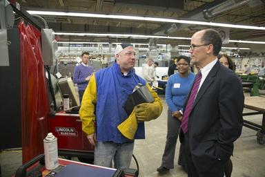 | Keywords: L-14-11-17-A-0282 (15634919117).jpg November 17 2014 - Boston MA - Sheet Metal Worker's Union Hall US Secretary of Labor Thomas Perez meets with Greg Leonard a 3rd year apprentice as he takes a break from mig-welding Official Department of Labor Photograph This official Department of Labor photograph is being made available only for publication by news organizations and/or for personal use printing by the subject s of the photograph The photograph may not be manipulated in any way and may not be used in commercial or political materials advertisements emails products and/or promotions that in any way suggest approval or endorsement of the Secretary or the Department of Labor Photo Credit U S Department of Labor https //www flickr com/photos/usdol/15634919117/ L-14-11-17-A-0282 2014-11-17 12 46 https //www flickr com/people/52862363 N07 US Department of Labor PD-USGov US Department of Labor https //flickr com/photos/52862363 N07/15634919117 2016-09-06 05 57 07 United States Government Work Uncategorized 2016 December 21 |