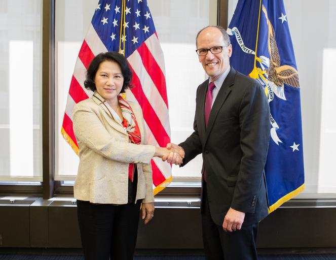 | Keywords: L-15-04-21-A.017 (17036659768).jpg 21 April 2015 “ Washington DC “ U S Secretary of Labor Thomas Perez meets with her Excellency Nguyen Thi Kim Ngan Vice Chairwoman of the National Assembly of Viet Nam Official Department of Labor Photograph Photographs taken by the federal government are generally part of the public domain and may be used copied and distributed without permission Unless otherwise noted photos posted here may be used without the prior permission of the U S Department of Labor Such materials however may not be used in a manner that imply any official affiliation with or endorsement of your company website or publication https //www flickr com/photos/usdol/17036659768/ L-15-04-21-A 017 2015-04-21 10 07 https //www flickr com/people/52862363 N07 US Department of Labor PD-USGov US Department of Labor https //flickr com/photos/52862363 N07/17036659768 2016-09-06 05 18 12 United States Government Work Uncategorized 2016 December 21 |