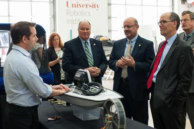| Keywords: L-15-05-29-A-005 (17726025044).jpg 29 May 2015 “ Pittsburgh PA “ U S Secretary of Labor Thomas Perez FAR RIGHT talks to Platypus President Paul Scerri FAR LEFT with Carnegie Mellon University Provost Farnam Jahanian CENTER RIGHT and Pennsylvania AFL-CIO President Rick Bloomingdale CENTER LEFT as they tour the Center for Robotics' Planetary Robotics High Bay at Carnegie Mellon University Secretary Perez was introduced to several startups and makers who are partnering with the New App for Making it in America which received a 3 million Workforce Innovation Fund grant from the Department of Labor in 2012 https //www flickr com/photos/usdol/17726025044/ L-15-05-29-A-005 2015-05-29 12 02 https //www flickr com/people/52862363 N07 US Department of Labor PD-USGov US Department of Labor https //flickr com/photos/52862363 N07/17726025044 2016-09-06 04 52 08 United States Government Work Uncategorized 2016 December 21 |