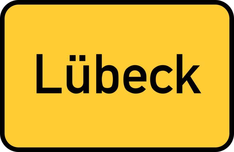 Keywords: lübeck hanseatic schleswig-holstein sleswick-holsatia hanse town sign city limits sign entry sign gateway sign traffic road sign street sign directory yellow germany direction unesco world heritage site