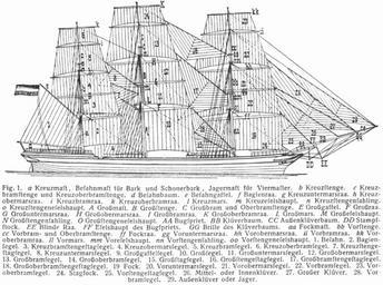Keywords: L-sail.png Lueger Lueger/Seafaring Names of sails on square riggers Names of parts of rig or sails Drawings of ships Legend in German