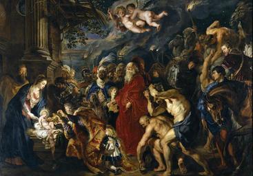 | Keywords: La adoración de los Reyes Magos (Rubens, Prado).jpg Artwork Q5961888 The Adoration of the Magi 1609 / 1628 - 1629 Oil on canvas 355 5 cm x 493 cm Institution Prado accession number P01638 object history credit line http //www museodelprado es/imagen/alta_resolucion/P01638 jpg PD-old-100 Paintings by Rubens in the Prado Museum Adoration of the Magi by Rubens 1609 17th-century religious paintings in Spain 17th-century oil on canvas paintings in Spain Paintings of putti in Spain Paintings of the Adoration of the Magi with putti 17th-century paintings of the Adoration of the Magi |