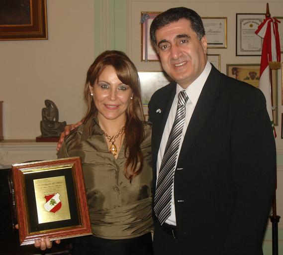 Keywords: La corresponsal Karen Marón recibe una distinción en la Embajada de Líbano en Buenos Aires en reconocimiento a su éxito internacional junto al Embajador Hicham Hamdan.jpg es La corresponsal Karen Marón recibe una distinción en la Embajada de Líbano en Buenos Aires en reconocimiento a su éxito internacional junto al Embajador Hicham Hamdan 2004-01-01 own Mdressi other versions cc-zero Karen Maron Relations of Argentina and Lebanon |
