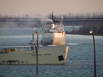 | Keywords: La Farge cement freighter English River and ESSROC cement freighter Stephen B. Roman, 2014 12 26 (8) (16114949721).jpg La Farge cement freighter English River and ESSROC cement freighter Stephen B Roman 2014 12 26 8 <br/> The English River ship 1961 and the Stephen B Roman ship 1965 are similar vessels owned by rival companies Cement companies Both vessels visit their company's respective cement silos about once every week or two But I have never seen both vessels traversing the harbour at the same time The English River was arriving She normally moors at the La Farge silo on Polson slip Normally the Stephen B Roman moors at the ESSROC cement silo on the Keating Channel I wasn't watching and I didn't see her emerge from her moorings but this time she seems to have emerged from the shipping channel Note the English River always proceeds to her mooring in reverse https //www flickr com/photos/55289779 N00/16114949721/ La Farge cement freighter English River and ESSROC cement freighter Stephen B Roman 2014 12 26 8 2014-12-26 16 25 https //www flickr com/people/55289779 N00 booledozer cc-by-sa-2 0 booledozer http //flickr com/photos/55289779 N00/16114949721 2014-12-27 11 51 22 cc-by-sa-2 0 https //ticket wikimedia org/otrs/index pl Action AgentTicketZoom TicketNumber Ticket 2012092210003274 OTRS ticket 2012092210003274 English River ship 1961 Photographs by Geo Swan 2014 in Toronto Taken with Sony DSC-HX50V 2014 in water transport in Toronto Stephen B Roman ship 1965 |