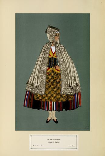 | Keywords: La Gascogne - Femme de Barèges - XVIIIe siècle (n° 106) - Fonds Ancely - B315556101 A GARDILANNE 014.jpg Fac-similé des deux-cents gouaches en couleur exposées en Janvier 1928 chez Bernheim jeune à Paris Les originaux édités vont alors au Métropolitain Museum de New-York La série comporte 25 fascicules de 240 francs pièce Les 27 planches rassemblées ici sont les suivantes pl 34 35 36 37 38 39 40 86 87 88 89 90 91 106 107 108 109 110 111 112 113 114 115 122 123 124 125 Pièces jointes prospectus du fac-similé des deux-cents gouaches en couleur exposées en Janvier 1928 chez Bernheim-jeune galerie à Paris et catalogue de cette exposition de 1928 Ancely René 1876 - 1966 Possesseur fre public domain domaine public B315556101_A_GARDILANNE_1_014 jpg image/jpeg 27 pl en coul ; 37 5 cm Moffat Elisabeth Whitney Illustrateur http //numerique bibliotheque toulouse fr/collect/general/index/assoc//ark /74899/B315556101_A_GARDILANNE_014 dir/B315556101_A_GARDILANNE_1_014 jpg Bibliothèque municipale de Toulouse A-GARDILANNE 14 Creator Gratiane de Gardillane http //catalogues toulouse fr/web2/tramp2 exe/do_keyword_search/log_in setting_key BMT1 servers 1home query p000471 vignette http //numerique bibliotheque toulouse fr/collect/general/index/assoc//ark /74899/B315556101_A_GARDILANNE_014 dir/B315556101_A_GARDILANNE_1_014_thumb jpeg by 1928 La Gascogne - Femme de Barèges - XVIIIe siècle n° 106 B315556101_A_GARDILANNE_014 watercolor - paint - colors Women in art Capes Gratiane de Gardilanne Female clothing Barèges Gaiters Gascogne Skirts in art Standing people Aprons in art National costumes in art Bodices |