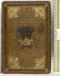| Keywords: La Mareschalerie de Laurent Ruse, ou sont contenuz Remedes - Upper cover (c46e4).jpg Style Armorial Cornerpiece Semis background of small tools Feathers; Caption Upper cover; Colour Brown; Edge Unspecified exhibition history Decorative Technique Tooled in gold Tooled in silver; Cover Material Calf With intials H P object history Text 1563; Paris; Henry Prince of Wales son of James I object type Cc-zero place of creation Binding England place of discovery To research armorials see British Armorial Bindings Database sponsored jointly by the Bibliographical Society and the University of Toronto http //armorial library utoronto ca British Library image http //www bl uk/catalogues/bookbindings/LargeImage aspx RecordId 020-000002512 ImageId ImageId 40861 Copyright BL La Mareschalerie de Laurent Ruse ou sont contenuz Remedes Uploaded with GWToolset La Mareschalerie de Laurent Ruse ou sont contenuz Remedes - Upper cover c46e4 http //www webarchive org uk/bldatasets/bindings/5349_4 jpg Bookbinding 17th-century bookbinding British Library Bookbindings |