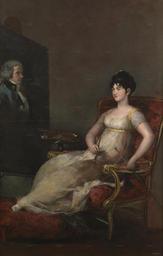 | Keywords: La marquesa de Villafranca pintando a su marido.jpg La marquesa de Villafranca pintando el retrato de su esposo The Marchioness of Villafranca Painting her Husband 1804 Oil on canvas cm 195 126 Institution Prado http //www museodelprado es/imagen/alta_resolucion/P02448 jpg PD-old-100 The Marchioness of Villafranca Painting her Husband Goya |