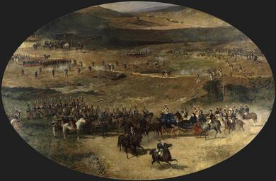 | Keywords: La reina María Cristina y su hija Isabel II pasando revista a las baterías de artillería que defendían Madrid en 1837 (Museo del Prado).jpg El lienzo muestra a la reina Isabel II de España 1830-1904 que fue la hija y heredera del rey Fernando VII pasando revista junto con su madre la reina regente María Cristina de Borbón-Dos-Sicilias a las baterías de artillería que defendían la ciudad de Madrid en 1837 de los ataques del ejército carlista en el contexto de la Primera Guerra Carlista que se desarrolló entre 1833 y 1839 1865-1866 oil canvas Size cm 460 300 Institution Museo del Prado https //www museodelprado es/coleccion/obra-de-arte/la-reina-maria-cristina-y-su-hija-isabel-ii/293ac041-a9da-48af-ab32-c007d8a1c930 object history exhibition history credit line accession number P04332 https //content1 museodelprado es/imagenes/Documentos/imgsem/29/293a/293ac041-a9da-48af-ab32-c007d8a1c930/06ab2271-699d-480d-abea-7512c397a7ad jpg Portrait paintings of Isabella II of Spain as child Maria Christina of the Two Sicilies First Carlist War Spanish 19th-century paintings in the Museo del Prado Paintings by Marià Fortuny PD-old-100 |