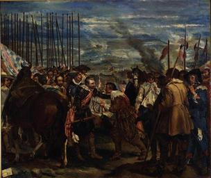 | Keywords: La rendición de Breda (Real Academia de Bellas Artes de San Fernando).jpg Artwork Creator Alejandrina Gessler y Lacroix Esta obra es una copia del cuadro de La Rendición de Breda que fue pintado por Diego Velázquez en la década de 1630 y que se conserva en el madrileño Museo del Prado 1872 oil on canvas Size cm 98 81 Institution Real Academia de Bellas Artes de San Fernando http //ceres mcu es/pages/Main accession number 0415 http //ceres mcu es/pages/Main PD-old-100 La rendición de Breda Paintings after Diego Velázquez Alejandrina Gessler y Lacroix 19th-century paintings in the Royal Academy of Fine Arts of San Fernando 1872 paintings in Spain |