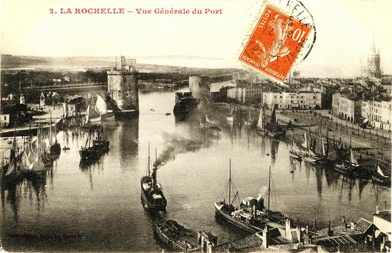 | Keywords: La Rochelle - Vue générale du port avec un bateau partant pour l' Île de Ré.jpg fr Vue générale du port de La Rochelle avec un petit paquebot côtier partant pour Saint-Martin-de-Ré Île de Ré La Rochelle Charente Maritime France Entre 1903 et 1908 Carte postale ancienne numérisée en 2009 Editions Archambaud La Rochelle Entre 1903 et 1908 cachet postal en date d'août 1908 PD-old Port de La Rochelle début 20ème siècle Tour de la Chaîne Tour Saint-Nicolas Tour de la Lanterne | ||||