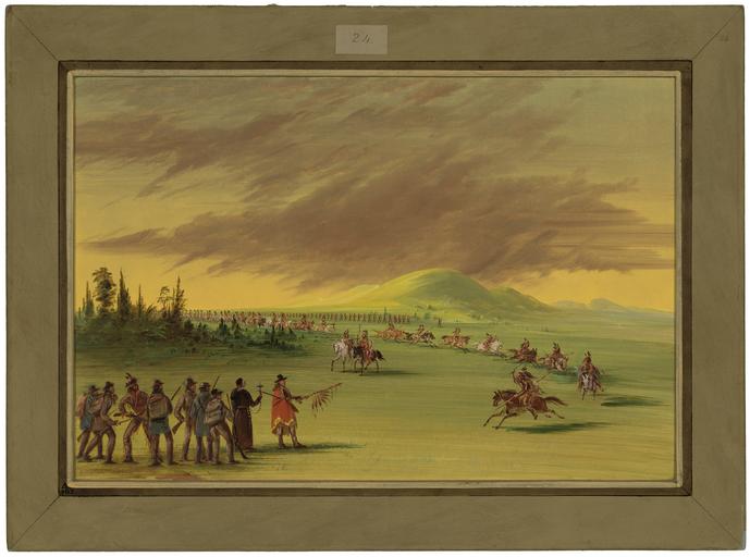 | Keywords: La Salle Meets a War Party of Cenis Indians on a Texas Prairie. C16091.jpg Artwork 1847/1850 oil on canvas overall 37 8 x 56 5 cm 14 7/8 x 22 1/4 in institution National Gallery of Art place of discovery object history exhibition history credit line Paul Mellon Collection accession number 1965 16 338 place of creation http //www nga gov/content/ngaweb/Collection/art-object-page 50646 html Q20187898 PD-100 Collections of the National Gallery of Art Uploaded with pattypan | ||||