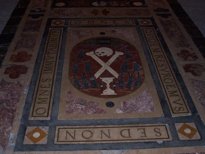| Keywords: La Seu base plate death.jpg a baseplate showing symbols of death in the Cathedral La Seu in Palma de Mallorca Own 2006-12-20 MSchnitzler2000 Markus Schnitzler own work Cathedral of Palma de Mallorca - Inside Cathedral of Palma de Mallorca - Details Skull and crossbones Human skulls in art Bones in art |