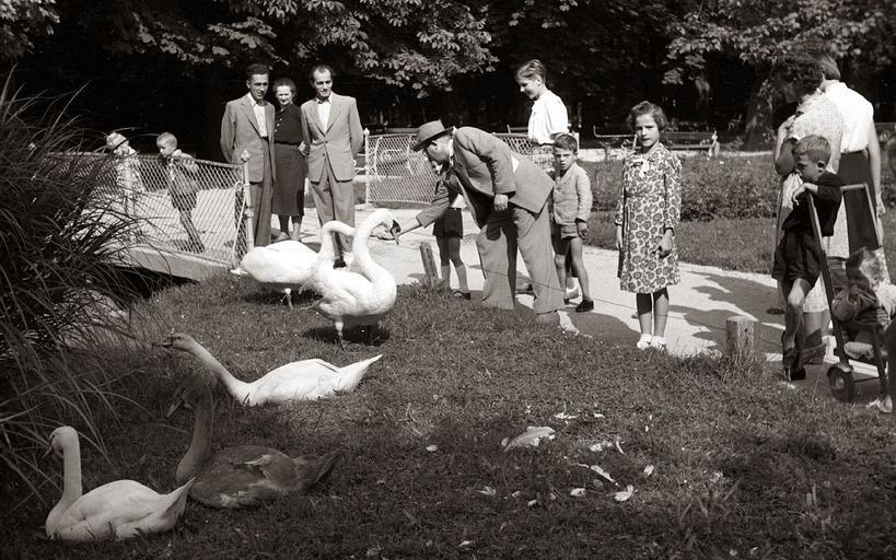 Keywords: Labodi v mariborskem mestnem parku 1955.jpg Labodi v mariborskem mestnem parku 97234 1955-09-18 author PD-Slovenia 1955 in Slovenia Historical black and white photographs of Maribor Maribor City Park Birds of Maribor Swans of Slovenia Baby cars in Slovenia People feeding swans Photos of parks or gardens with Cygnus olor |