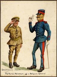 | Keywords: university of victoria universityofvictoria uvic great britain. army. royal regiment of artillery greatbritainarmyroyalregimentofartillery caricatures and cartoons--20th century caricaturesandcartoons20thcentury notebooks war artists warartists world war, 1914-1918--pictorial works worldwar19141918pictorialworks world war, 1914-1918--caricatures and cartoons worldwar19141918caricaturesandcartoons people photo border outdoor Item is one of 123 pen-and-ink drawings and watercolours from two volumes titled: "Sketches of the War: France/Belgium". The sketches vary from satirical cartoons to more detailed and naturalistic renditions. They are often accompanied by an ironic title and are often signed with the artist's initials, "J.M." The artist's satirical targets include the officers and high command of both combatant sides; the disjuncture between reported and actual events, and the death of civilians as a fact of modern warfare. Item is one of 123 pen-and-ink drawings and watercolours from two volumes titled: "Sketches of the War: France/Belgium". The sketches vary from satirical cartoons to more detailed and naturalistic renditions. They are often accompanied by an ironic title and are often signed with the artist's initials, "J.M." The artist's satirical targets include the officers and high command of both combatant sides; the disjuncture between reported and actual events, and the death of civilians as a fact of modern warfare. |