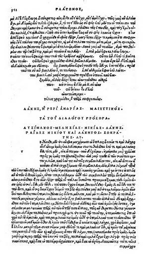 Keywords: Laches beginning. Editio princeps.jpg en Laches beginning Editio princeps Venice 1513 de Laches Anfang Editio princeps Venedig 1513 1513 editio princeps Plato PD-old-100 Omnia Platonis Opera editio princeps Uploaded with UploadWizard