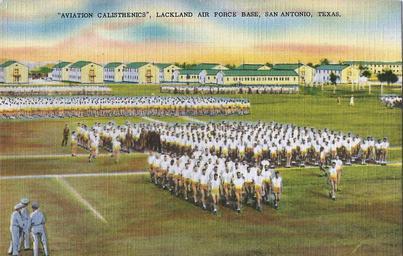 | Keywords: Lackland Air Force Base - Aviation Cadet Calisthenics.jpg en Lackland Air Force Base - Aviation Cadet Calisthenics 1948 United States Air Force United States Air Force other versions PD-USGov Lackland Air Force Base Postcards Uploaded with UploadWizard |