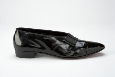 | Keywords: Lacksko - Livrustkammaren - 66235.tif Modellen är skuren i tre delar Bakstycket har sytts samman med dubbel söm mitt bak och förenas med ovanlädret med sidsöm <br/>Skon fodrad med svart kalvskinn likaså innersulan En extra svart sula finns skons bakre del <br/>Ringningen kantad med ett 5 mm brett svart ripsband Framtill i ringningen finns en platt 80 mm bred dubbelrosett av svart ripsband bredd 35 mm <br/>Innersulan märkt med i guldskrift KUNGL HOFLEVERANTÖR // G T Palms Efter // Paul Persson // STOCKHOLM <br/><br/>Yttersula är i frampartiet av ljusbrunt nötläder och sulan i hålfoten av svartfärgat nötläder som längs ytterkanterna har en dekorsöm <br/>Sulorna sammanfogade med en dekorsöm <br/>Den svarta träklacken har en stiftlapp av nötläder fastsatt med 44 trästift original caption Lacksko LRK 27509 <br/> Nyckelord Lack Sko Pumps Svart Föremålsbild Herrmode early other date century 20 size mm 280 size mm 89 sula size mm 25 klack size mm 57 klack g 250 LRK Gustaf V av Sverige Skor ger mer - makt flärd magi 2007 Manligt Ur Gustaf V s garderob 2011-2012 Livrustkammaren place of origin original filename lm_dig2261_27509 64103 inventory number LRK 27509 66235 CC-BY-SA Göran Schmidt <gallery caption Different images of same object > File Lackpumps - Livrustkammaren - 57674 tif File Lacksko insida - Livrustkammaren - 74797 tif </gallery> Göran Schmidt Footwear in Livrustkammaren Black shoes Fashion Male clothing Shoes on white background Media contributed by LSH unmatched material Media contributed by LSH dim-with multiple size templates Media contributed by LSH unmatched keyword Color images from Livrustkammaren Media contributed by LSH 2013-10 |