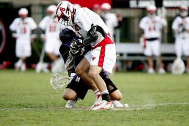 Keywords: lacrosse challenge game stick aggressive athlete athletic compete helmet ball action playing sport high school youth competition player outdoors grass