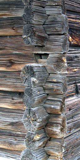 | Keywords: LadaRista1detail.JPG  sv Sexkantskallar och en avbruten hals som visar dubbelkatten på lada f d Härbre i Rista Gagnef sn Dalarna daterad efter 1596 own Taxelson 2008-03-10 LadaRista1 JPG 60 31 42 N 15 2 48 E Images by T Axelson Gagnef Municipality Gagnefs socken Ängslador in Dalarna Log cabin corner joints |